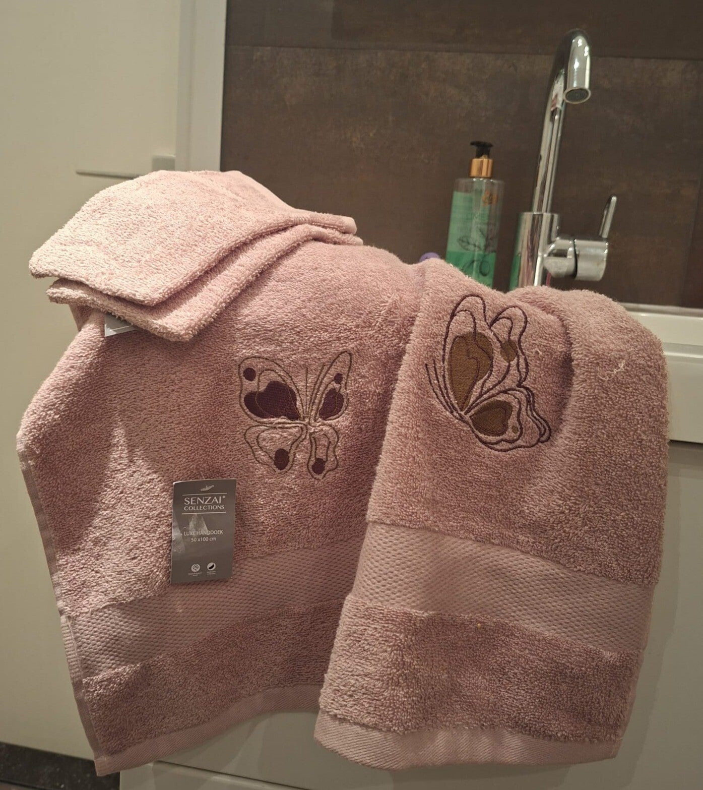 Deze prachtige handdoekenset is ideaal om cadeau te geven! Bevat: Grote handdoek, kleine handdoek, twee washandjes.